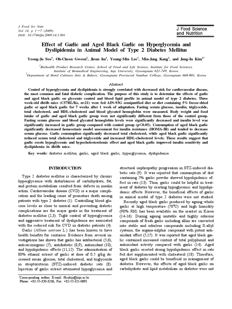 Effect of Garlic and Aged Black Garlic On Hyperglycemia and